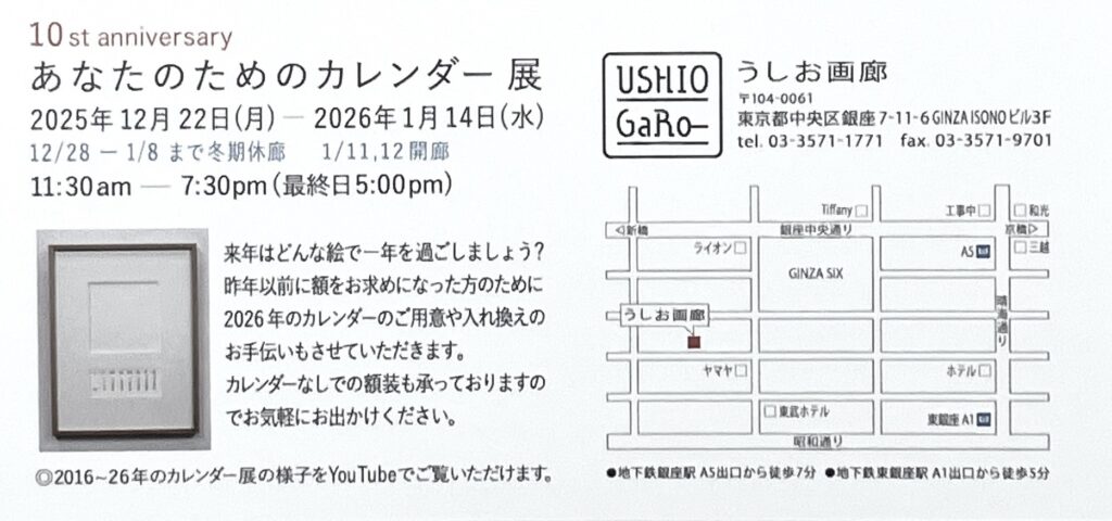 (12月28日ー1月8日まで冬季休廊)1月11日、12日開廊